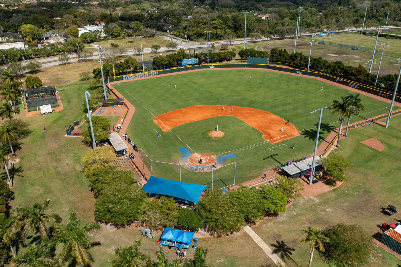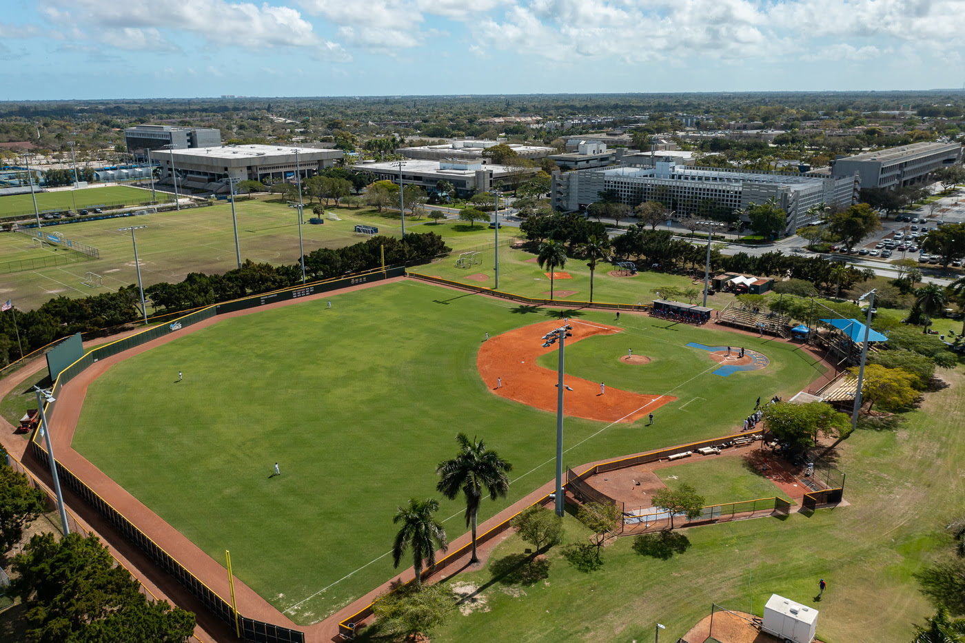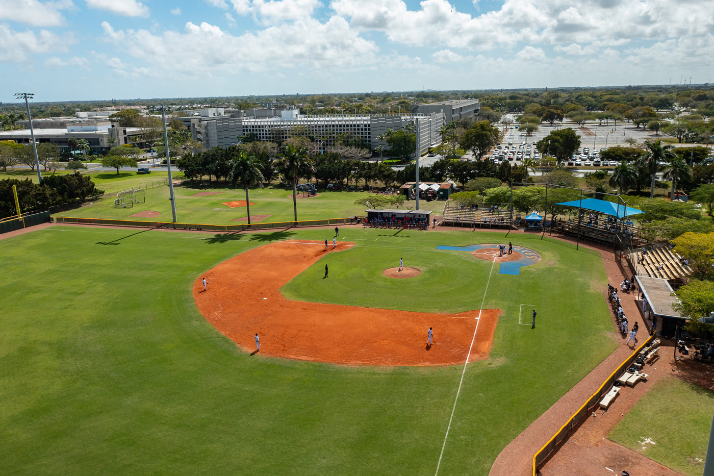 The baseball field at Miami Dade College’s Kendall Campus is home to the MDC Sharks baseball team. It features fencing, lighting, and is strategically located by the parking garage. The field supports both day and night games and also honors the college’s strong baseball legacy, including alumni who have played in the Major Leagues.