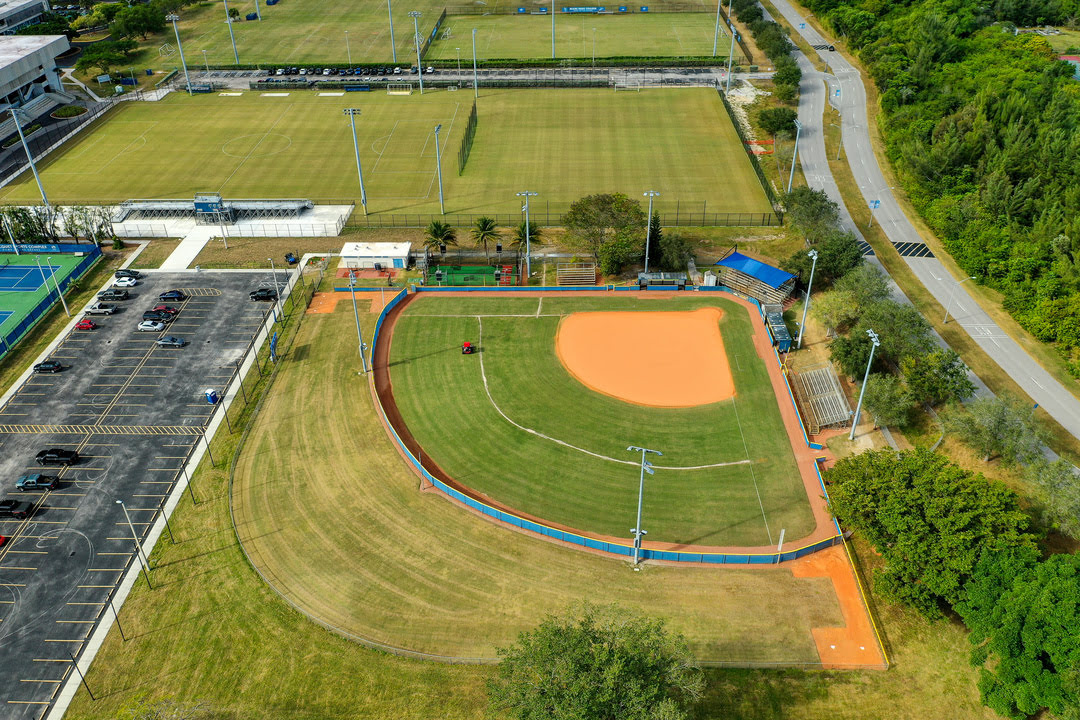 The softball field at Miami Dade College's Kendall Campus is a regulation facility featuring a dirt infield, grass outfield, and fenced perimeter. It serves as the home field for the MDC Sharks women's softball team and includes spectator seating. The field supports intercollegiate athletics and is also available for select community and campus events.